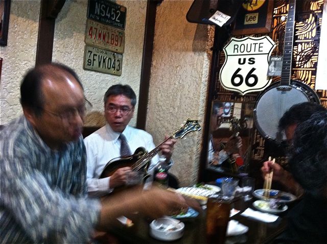 × [PR]上記の広告は3ヶ月以上新規記事投稿のないブログに表示されています。新しい記事を書く事で広告が消えます。 大阪のフィドラー&釣り師 バットさんが やってきました 釣り道具は持って行くけど、フィドルは貸してね と お誘いの電話がありました 去年も同時期に来て、仕事も少し、主に 釣りとブルーグラスを楽しみに が目的 場所はマーシャル青山 福岡 東区の流通センターの一角にあるレストランです すでに山口からはブルグラさん、 北九州からはHTカントリーさん、バットさんも見えてました いきなり盛り上がってバカ話していると きまぐれおやじさん、JEFFさん、孫正義さんもきました ここはステージがあり音響も用意してあるので すぐバンドが演奏始めました といってもしょっぱなは私がボーカル&ギター 打ち合わせ、練習なしのぶっつけ本番 1曲目はOld Home Place 演奏よりMC(おしゃべり)が多い という声多数 2曲目、My Window Faces The South スウイングの入った軽やかな曲です 曲が短いので楽器の持ち回りソロを たくさん入れてもらいました フィドルはバットさん、フラットマンドリンは孫正義さん ベースはエンドーさん 2曲やってステージを降りて飲み方にまわります 秋本兄ちゃんや柏岡さんもやってきました 今日は特にお酒がうまい ビール、大吟醸、焼酎、うまいうまい HTカントリーさんのボーカルに ハーモニーを付けさせてもらいました(初めて一緒にやりました) 歌的にはカントリーのほうがメロディックなので 歌いがいがありますねー ということで楽しい楽しいマーシャル青山での 夜は過ぎて行きましたとさ PR |