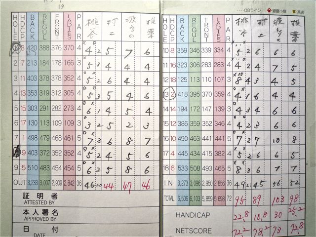× [PR]上記の広告は3ヶ月以上新規記事投稿のないブログに表示されています。新しい記事を書く事で広告が消えます。 人生、何がプラスになるのか マイナスになるのかわからない 人間万事塞翁が馬とは中国の故事で そういう予測不能なことをいっている きのうのゴルフのスコア 12番短いショートホールで8をたたいている 1打目をバンカーにいれ、そこからのショットが 直接ボールにあたってOB(グリーンすぐ奥がOB) 1打罰で4オン、しかしパターが入らない 3パットでおさまらず結局、4パット スコア8 あちゃ〜大たたきだっ そこだけで5オーバーだもんね ダブルペリアというハンディキャップの決め方は 18のうち12ホールのスコアで決める どれが隠しホールかわからない まさかこんな短いホールがねーっ でもゴルフは終わってみるまでわからない 大たたきのホールほとんどが隠しホール ハンディがもらえるホールに入っていた ということで22.8のハンディがついてネット72.2 最下位かな〜くらいに思っていたが 優勝していた 本人がビックリ ほんとにどう転ぶかわからない 塞翁が馬の一日だった PR