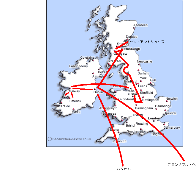 × [PR]上記の広告は3ヶ月以上新規記事投稿のないブログに表示されています。新しい記事を書く事で広告が消えます。 ツアーバスはリスドゥーンバーナの町の中心を 左に曲がった所で止まった その前に聞き取りにくい英語でアナウンスがあり 3人が降りろ とどうやら言っていた 止まった所を見ると右手にホテルらしき物が見える あ、これが今日の宿かな? ってな感じで寝ていた連れの2人を起こし バスのお腹からスーツケースを引っぱりだす 40人のツアー客のうち泊まりは僕ら3人だけだった あとの人は全員、日帰りのお客さんだった というのにビックリ 明日、同じ時間にバスが通るから それに乗ってくれい というバスの運転手 そうかー、安いツアーだったからね こんなもんだろうな なにしろ宿代込みで1人/48ユーロ 5,700円だもんね ツアー代と宿代が半々ってとこかな 泊まりは初めて経験するホステルだ 設備がかなり質素、タオルなどもない ただし、キッチンとダイニングルームは充実していて 全ての調理器具やでかいオーブンやらある 外国に旅行すると時おり困るのが食事 油物ばっかりでうんざりすることが多い キッチンがあると、野菜などを買い物してきて 自分の好みで作る事ができる こちらはジャガイモはもちろん ホワイトマッシュルームが安くて豊富 またフランスやイタリアなどから来た人達と 同じキッチンであれこれおしゃべりしながら作る 向こうはこちらの料理法に興味を示すし 向こうの男性たちも手際がいいしスピードが早い そうやって出来た食事を食堂で食べる これなに?おいしそうだね、などという話がはずむ ここはスリープゾーンというホステル スタッフはフランス人のアルバイトが多かった 英語を学べるのとで一石二鳥とのこと お客もフランス人が2〜3組 フランス独立記念日でホリデーらしい スタッフがクレープをやいて、ふるまってくれた どんどん焼き上がっていくのに、ジャムをぬってはおばる つくりたてで心のあるもてなしだった さて夜はパブ ちかくのロードサイドタバーンにまず入る フルートとコンサーティナの2人で アイリッシュを弾いていた どちらも相当うまい フルートのブレスが聞こえなくて耳障りがいい 足でリズムを打ち鳴らして、聞いていると声をかけて来た フィドルがあればできるんだが、というとあいにく店にはない 今回は楽器を持って来なかったので なかなか奥まで入り込めなかった でも、素のアイリッシュをたくさん聞く事ができた PR 英国のストーンヘンジにかぎらず この辺は巨石文化のなごりがある 世界遺産であるニューグレンジや ボイン渓谷の遺跡など見所は多い 島の西部にはモハーの断崖がある 一度は見ておきたい ゴールウェイからの1泊2日の現地ツアーに参加する バレン高原とモハーを見る 今回は1泊毎に場所、宿を変えているので スーツケースをごろごろ、引っぱって行かなくちゃならない 40人乗りのバスは満席、日本人は僕らだけ ずいぶん年配のドライバーの英語がわかりにくい バスが出発した瞬間からガイドよろしく おしゃべりがはじまるが、ほとんどわからん まわりの客はわらったり、返事をしているので 英語ネイティブの人にはわかるのだろうが 浪曲師よろしくダミ声でちょっとゲールなまりか? 日本では聞いた事のない英語だ バレン高原は石の山といった面持ち 平たい石が積み重なって出来ているようだ ダブリンからゴールウェイに移動する間も 牧草地の境界には石を積んで柵をつくってある その石をどこから持って来たのだろうと フシギに思っていたが、謎がとけた 石を積む という文化(生活の基礎)があるんだ 牛、ヒツジなど動物を囲う為に さて、バレン高原にはドルメンと呼ばれる 大きなテーブルみたいなのがある 巨人のテーブルなどと呼ばれている 何に使ったのだろうか 今日はリスドゥーンバーナという 小さな町に泊る予定 この町はマッチメイキング(お見合い)で有名 9月に数週間がお見合いの為に、大勢が集まってくる さ〜て、パブに行くか〜 てな事で、女性2人は宿まで送って、再度ひとりで出かける ゴールウェイに限らず、西の方は音楽が盛ん 特に伝統的な音楽の宝庫だ このTig Coiliというパブ 宿の主人から教えてもらったパブ 着いた時にはフィドルのおっちゃんがいた いろいろ話しかけて、ミュージシャン席に座らせてもらう パブにはミュージシャン用の席が用意してあるので ちょっと、待遇がいいというか、エヘン気分なのだ フィドルのおっちゃんは(って、僕より若いけれど) Paul Bradley(ポール ブラッドリィ)と言う人 自分でバイオリンも造っていて 演奏もレベルが高い 演奏場のコツ、トリプレットのコツなど教えてくれる そうこうしているうちに、セッションが始まってくる フラマンでもアイリッシュ演奏するんだなー トリルや三連符をエキサイティングに弾いていた ちょっと借りて弾かせてもらったが ピックはやわやわで音にならなかったぞ よくこんなんでデカイ音をだすなーと感心 もう一人