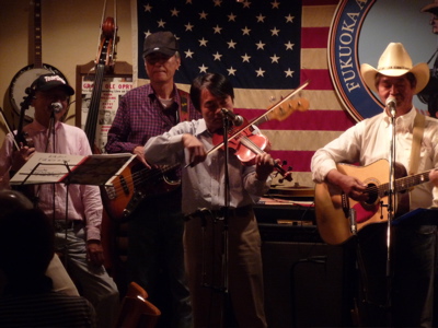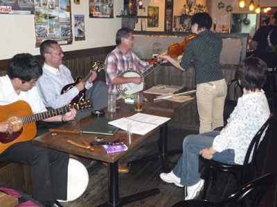 × [PR]上記の広告は3ヶ月以上新規記事投稿のないブログに表示されています。新しい記事を書く事で広告が消えます。 チャックワゴンの元オーナー ハンク佐々木さん。 このときのチャックは本当に面白かった。 エレキギターとハーモニーで一緒に演奏していた。 なんといっても佐々木さんのホスピタリティがすばらしく 金.土の夜は入れないくらいのお客さんでいっぱい。 知り合った人もたくさんいる。 結婚したカップルもたくさんいる。 いろんなことが たくさんあった。 アメリカで挑戦するために 店をゆずることになった。 COWBOY FROM JAPANという曲のデモテープを 作った時にフィドルで手伝ったのを思い出す。 佐々木さんがチャックを手放して以来 ほとんど行っていない。が あさって10日の金曜日、フィドルを持って 行ってみようと思っている。 マウント藤田さんのバンドで、 翌週のパーティのリハがてら。 10数年ぶりのチャックワゴン。 どんな感じかすこし楽しみ。 PR このCDが出てるってしらなかった。 何回も何回も何回も何回も聞いたレコード ドック ワトソン イン ナッシュビル。 カジノでポーカーをやっているドックが うまくいったよ というアルバム。 後ろの壁がピンクペイズリー柄で なんともいいフンイキ。 中身の音楽も超ゴキゲンさん。 ほとんどの曲をコピーして弾いていたのを 昨日の事のように思い出す。 特にブラックベリーラグは大好き。 昔、ヤマハの講師のグレード試験もこれでパスした。 北野タダオ ジャズオーケストラがバックを つけてくれて、終わったときの彼らからの 拍手をいただいたのは、やっぱり嬉しかった。 聞きすぎて、2枚買ったレコードのうちの1枚。 ドックワトソンでは一番すきなアルバム。 内容は 1 Alabama Jubilee 2 Streamlined Cannonball 3 Peach Pickin' Time in Georgia 4 June Apple 5 I'm Thinking of My Blue Eyes 6 Memphis Blues 7 Train That Carried My Girl from Town 8 Old Camp Meeting Time 9 Bye Bye Blues 10 Shady Grove 11 Blackberry Rag 12 Girl in the Blue Velvet Band 13 Rainbow 14 Step It Up and Go 夜にブラックベリーラグを譜面にしてみた。 アイネクライネナハトムジークである。 Tさんのギターレッスンが午前中にあり、 チャーチリックのコードチェンジの練習。 アメジンググレイスをメトロノームに合わせて 練習する。 キーはDで、GとA7の3コードの練習だが リズムを守ってのコードチェンジは最初は上手くいかない。 でもだんだん上手になって来ていて、嬉しくなる。 後半は歌を歌いながらの練習。 メロディを歌ってもらって、こちらは ハーモニーをつける。これも楽しみ。 午後は、クラシックの練習会。 フルート、バイオリン、チェロで練習している。 モーツァルトのフルート四重奏をやっている。 ビオラがいないので、音が少しぬけるのだが、、、。 モーツァルトをやるたびに思うのは よくこんなに素晴らしいメロディがうかんできたなぁ という事。 ふつうは作曲はワンパターンになりがちで 最初は目新しいが、だんだん慣れて魅力が薄れてくる。 だけどこの人のはそういう事がない。 全体的に長調の曲が多く明るいのだが飽きない。 フルート四重奏はD.G.C.Aの4つのキーで書かれ それぞれが4〜5の小品で成り立っている。 ひとつとして同じパターンがなく もう大天才としか思えない。 メロディだけでなく編曲もみごとにからみあって ヴィオラも入れば、どんなに楽しいだろう、と思っている 夏祭りの司会を今年もおおせつかった。 ワタクシの住んでる街、オークタウン。 年に1回の夏祭りがことしもやってくる。 屋台あり、アトラクションあり、踊りありで 超盛り上がるイベント。 アトラクションはバンド演奏やソーラン踊り、 花火から大抽選会まで。 バンドは町外から呼んでいるが 町内の人が参加するのがいいなぁと思っていた。 昨晩はそれの打ち合わせで、その事を話したら 来年は町内バンドで演奏しようという事になった。 それで、音楽同好会を作ろうと思っている。 たぶん、音楽の経験者はいっぱいいらっしゃるだろう。 その人達が出てこられるかといえば、そうでもないかもしれない。 一人でも音楽のたのしさを味わって欲しいと 思っているので、初めてでも初心者でも大歓迎。 ウクレレやギター、バイオリンを弾く人が 楽器を初めてよかったなぁ と思ってくれればウレシイ。 夏祭りだけじゃなく、人生に音楽という エッセンスが加わってくれればいいな。 フィドル教室がはじまる。 JEUGIAカルチャーセンターというのが3ケ所ある。 天神 BIVI 筑紫野イオンモール 粕屋ルクル 筑紫野イオンで今週からフィドルをお教えする事になった。 楽しいバイオリンを弾きたい という事である。 アメリカン フィドル メソッドという教則本を使う。 中級用の曲が27曲はいっていて、楽しいのばっかり。 全曲スラーなどに注意しながら弾いてみた。 はじめて弾く曲も多かった。 バンジョーやフラットマンドリンにつづいて フィドルもお教えする事ができて楽しみである。 バイオリンはきれいな音を出すのがむず