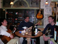 書き上げて、一息つく。 バックインビジネスのバンジョーの森さんとも 最近少し会ってないので電話して会うようになりました。 今日は居合いの昇段試験の由で合格したらしいので 千代のゆめタウンのスタバで会いました。 カマカのウクレレを見てもらいたかったのもあるし 今月の打ち合わせも兼ねた話。 今月は21日、田主丸の若竹酒造の蔵開きがあり 行って演奏の予定です。 カミさんが運転手を引き受けてくれると 皆が飲めるシチュエーションなので、しかも 日本酒、ごま焼酎、巨峰ワインとそろいぶみなので グデングデンになって、演奏後回しの可能性大という所です。 ウクレレ教室のことで、福岡,早良区にある 文化センター高取にでかけ、帰り道ぶらぶら歩きました。 大通りから1本入った道は、初めてみる景色ばかりで カワイイ店や、旨そうな料理屋などが発見できました。 高取〜西新〜唐人町〜荒戸〜黒門〜赤坂〜警固と ぶらぶらぶらぶら。 裏道はオモシロ〜い。 今日はでロウガンズというブルーグラスバンドの助っ人です。 知らない曲が3割程。何とかこなし10時半に終了。 ここマンプレでも教室やってみたら?とのお誘いあり。 歩いてケルツに行ってみると、友人のティムがさっきまでいた由。 4月12日のウクレレ/ギターレッスンのパンフが出来ていました。 アイリッシュフィドラーの白井さんが来て 1時間程話したり、フィドル弾いたり。 最近外に出る事おおく、充実気味です。 今日は友人のアダムがメルボルンに帰ってしまいました。 4年間よく一緒にランチしました。 仁義のある人間です。 ウクレレのレッスンが現実味を帯びてきました。 4月12日に福岡アイリッシュパブ.ケルツで14時より 行います。わだば.うくれれしぇんしぇーになる? その他にも2〜3ケ所で計画中で、少しワクワクです。 ウクレレの合奏を中心に考えていて、オーケストラを 作るのが夢です。 その事を考えていたら、ワクワクしてきて、3時頃まで 眠れなくて、朝も6時前に起きて、いろいろ思いを巡らせました。 オーケストラ用の音作りをマックで始め、 アメジング グレイスのウクレレ4重奏が完成しました。 なかなかクールです。 これを、タブに書き下ろす作業をします。 めっちゃ楽しい〜。 楽団名は、ウクレレ フクオカ オーケストラ 略して U F O (ユーフォー)にしようかな。 楽団員募集中。楽器弾けないひと大歓迎です。 平日で雨模様の日は少し寂しいですね。 昨日のマンプレも同じ感じでしたが、 カントリーの先輩?に会えました。 チャックワゴンというカントリーのライブハウスが 福岡にありますが、その創設に関わったお2人も見えていて 歌のうまさにビックリシマシタ。 当時のお客さんも別に見えていて、20数年ぶりの再開でした。 最初の経営者、柳原さんから引き継いだハンク佐々木さんの バンドでエレキギターやフィドルでお手伝いしていて 当時のチャックは色んな人間模様が折り重なっていて とてもたのしかったです。 いま、ああいう場所がないですね。 昨日のペダルスチールは松岡さんといって、 この人ともチャック仲間です。 *写真はグリーンバード。 10年程前にマンプレで撮ったものです。 私のバイオリンの1本を紹介します。 1786年製のイタリア、ベネチアで作られた ベルフェウスという人の作ったバイオリンです。 1786年というと今から223年前、日本では江戸時代 田沼意次が過大な公共事業による財政悪化の責任を取って辞任。 アメリカでは10年前の1776年に独立宣言がなされましたから やはり古い楽器です。 いま生きている人は誰もいません(たぶん)が当時の 木材がバイオリンの形として、残されているのを見ると 感慨深い物があります。 ニスもドラゴンブラッドという(本物の竜の血ではありません) 樹木の液を使ってあり、赤くて鱗のように経年変化します。 音質は固めですがシルバートーンと言えます。 ヴィンテージを通り越した時代の遺産という感じがします。 この美しいウクレレは1920年代のLyon & Healyです。 あまりなじみがないかも知れませんが、当時の高級品の メーカーです。 一度だけ同年代のギターを弾いた事がありますが、 なかなか美しい音で鳴っていました。 ギターもいい値段がしますが、ウクレレも希少価値の故か 結構な値段がします。だいたい2,000ドルくらいです。 この美しいウクレレは悲しいかな、不注意でランプのそばに 置かれ、表が少しこげてしまって黒くなりました。 その時にか、クラックも12〜3ケ所はいり、かわいそうな 状態ですが、それ以外はちゃんとした状態の様子。 ついつい、かわいそうで手元に置いてやりたい気持ちに なってしまいます。 価格はドンと下がって400ドルちょっと。 グラッとくる価格ですね。 http://www.youtube.com/watch?v=OcnvRC7sJVk http://www.youtube.com/watch?v=Ni8KBhnebwE&feature=related DVDをいただきました。 先日フィドルで参加した時のメンバーで スチールギターの名手、Hさんからです。 お互いにチェットアトキンスやジェリーリードが 好き