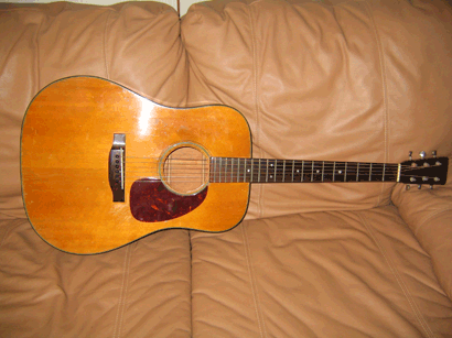 もう、35年も経ってしまいましたが、あの感動をずっと引きずっています。 弾いたのは、1934年のマーチン000-28ヘリングボーン、今思うとロングスケールの物だったかもしれません。 その時はギターの鳴き比べをしようと数本のギター、D-45、D-28の50年代のもの、ギャラガー、それに私の70年のD-18が集まっていたのでした。